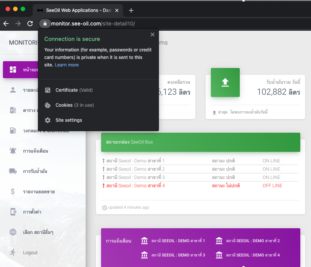 SeeOil Web Application เป็น website ที่ผ่านการรับรองจาก Google เรื่องความปลอดภัยในการเข้าใช้ง่าย โดยการสื่อสารทั้งหมดจะถูกเข้าระหัสก่อน เพื่อป้องการโจรกรรมทางข้อมูล